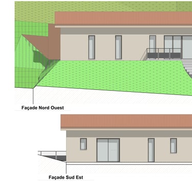 Adrien et Marine m’ont confié la conception de leur maison de 100 m², implantée sur un terrain en pente qui, loin d’être une contrainte, offre une vue remarquable et un environnement paisible au bord de la voie verte. Le projet s’adapte naturellement au relief pour limiter les terrassements et garantir un accès voiture pratique. Le volume en plain-pied s’intègre harmonieusement au site, tandis que les ouvertures verticales, orientées au nord, capturent la lumière et dévoilent pleinement le paysage.